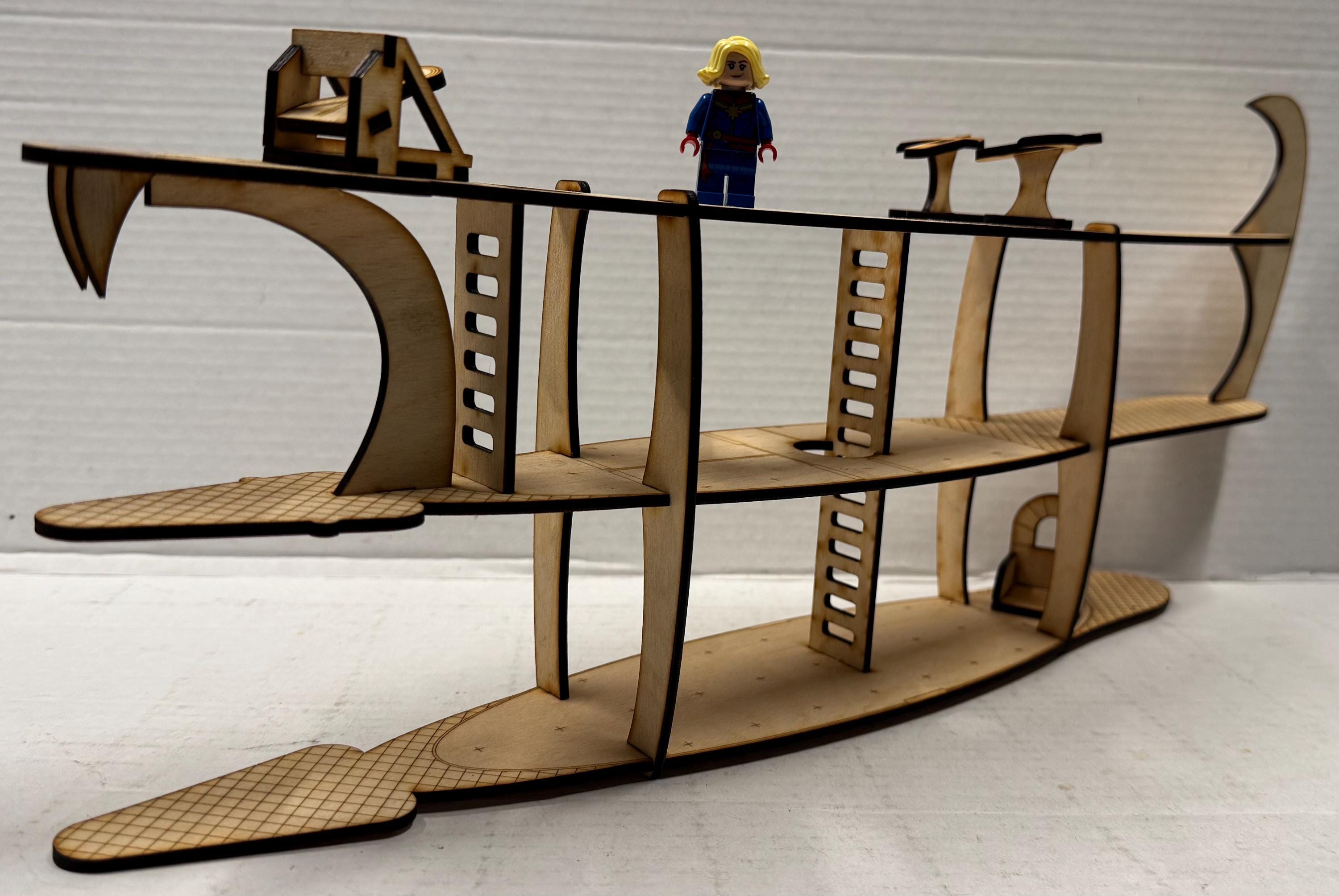 This Model ship has been designed and build to a Tabletop scale of 28mm. And works well with games like Warhammer, Dungeons & Dragons, Spelljammer, and Blood & Plunder. Really any table top role playing game. The decks have been engraved with a 1 inch grid to make game play easier. The listing includes 2 ballistas, 1 catapult, and a spell jammer chair. The lego figure shown is for scale purposes only and NOT included in the sale.